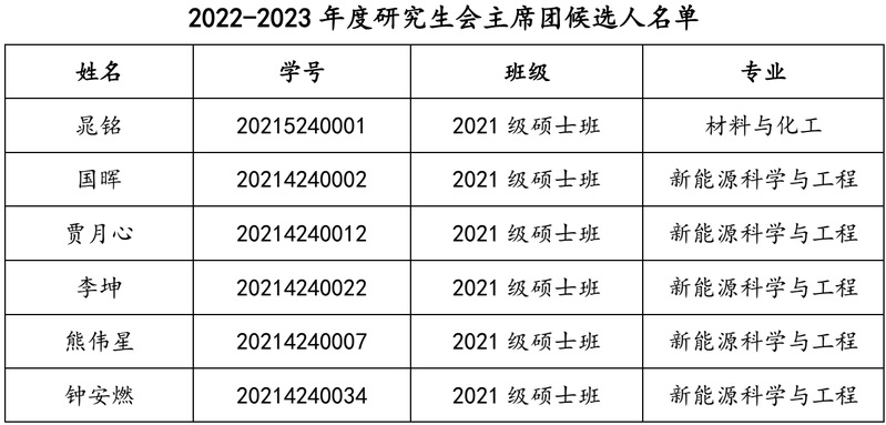根据《苏州大学学生会(研究生会)深化改革实施方案》,我院开展了2022-2023年度研究生代表、研究生会委员会候选人、研究生会主席团候选人的推荐工作。经学生本人申请、班级团支部推荐、学院团委评定审核,公示如下。