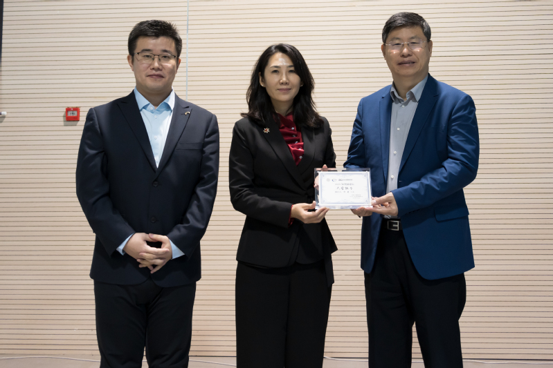 大会主席为许莉总裁颁发大会报告证书