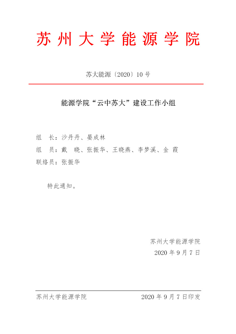 能源学院“云中苏大”建设工作小组 苏大能源〔2020〕10 号