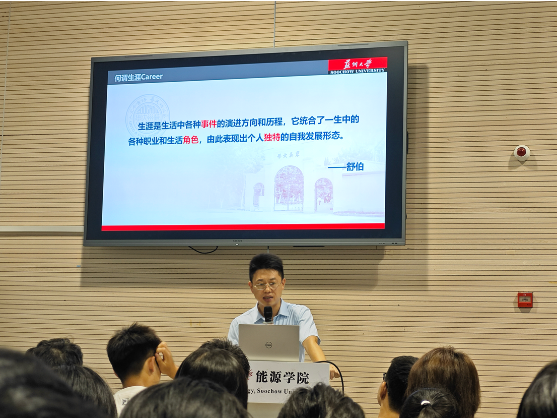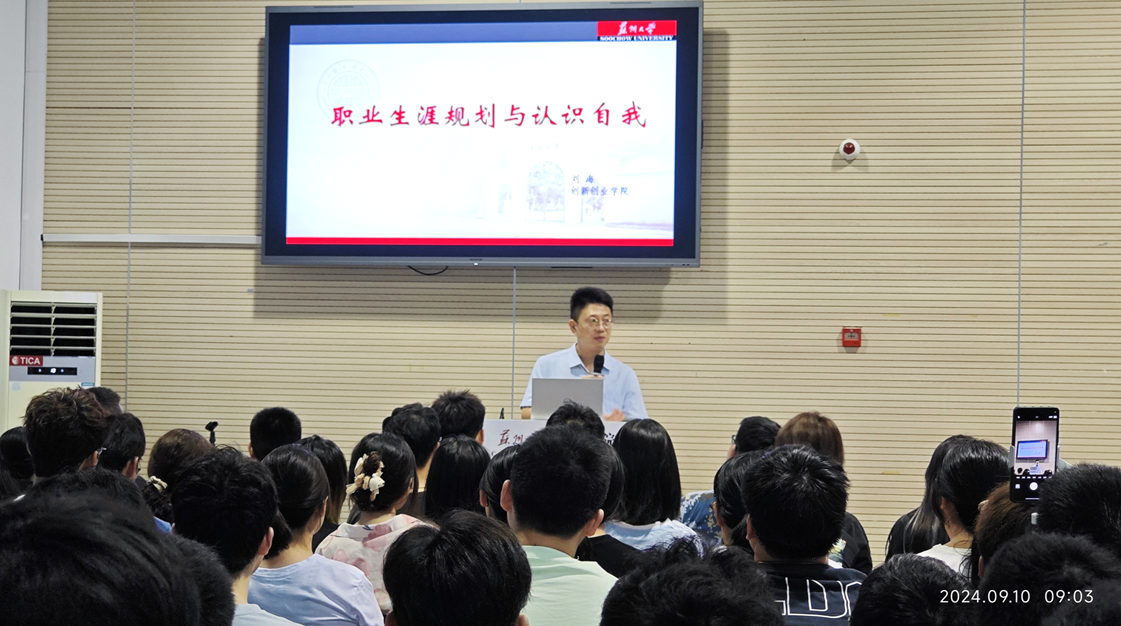 9月10日上午,能源学院邀请校创新创业学院实践与平台管理办公室主任刘海老师在多功能厅为新生带来了一场题为《职业生涯规划与认识自我》的主题讲座,活动由张振华老师主持。