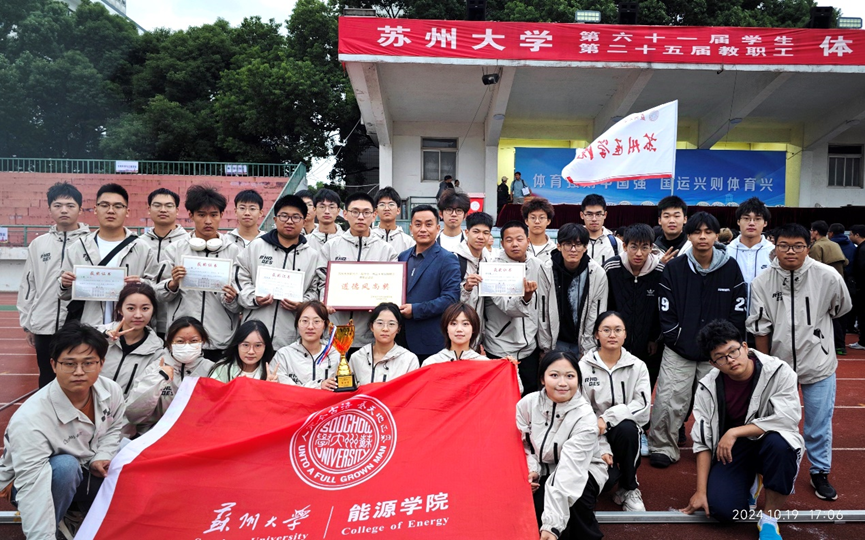 10月19日下午,校运会圆满闭幕。为期两天的比赛,在学院师生的共同努力下,能源学院在本届学生运动会中以成绩总分87.5分取得历史性突破,位列第十,女子团体总分第七首次进入全校前八,再次摘得道德风尚奖,充分体现了能源人团结、拼搏、奋进的精神。