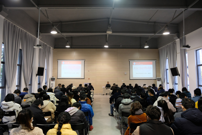 为深入学习宣传贯彻党的十九届六中全会精神,推动全会精神学习走深入实,12月15日下午,苏州大学党委统战部、能源学院党委、苏州工信局机关党委第七支部、敬文书院党委在新能源大楼121多功能厅联合举行了“深入学习贯彻十九届六中全会精神,意气风发踏上向第二个百年奋斗目标进军的新征程”专题学习会。能源学院全体师生党员、分党校学生参加专题学习会。专题学习会由校宣讲团成员、马克思主义学院姜建成教授主讲,会议由能源学院党委书记沙丹丹主持。