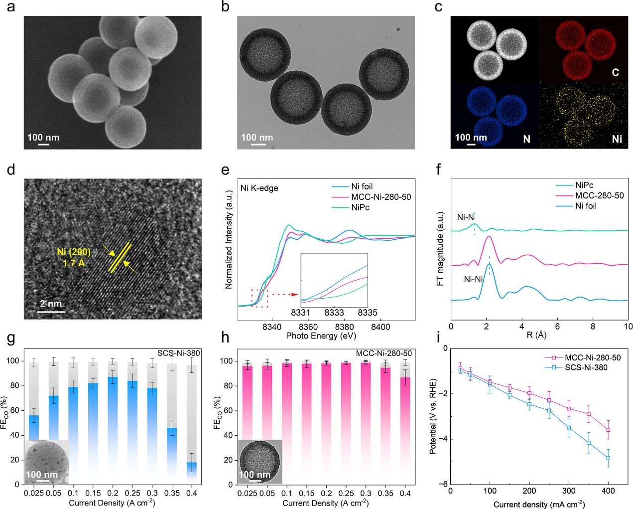 图1. MCC-Ni-280-50的结构表征及其eCO2R性能。