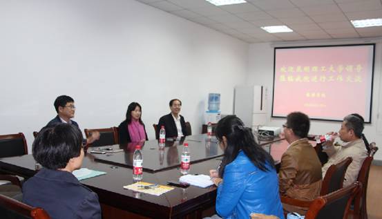 2015年10月29日下午,昆明理工大学校长张英杰教授来我院参观交流,学院领导和老师进行了热情接待,并在学术发展、学院工作、实验室建设等方面进行了相互沟通与学习。
