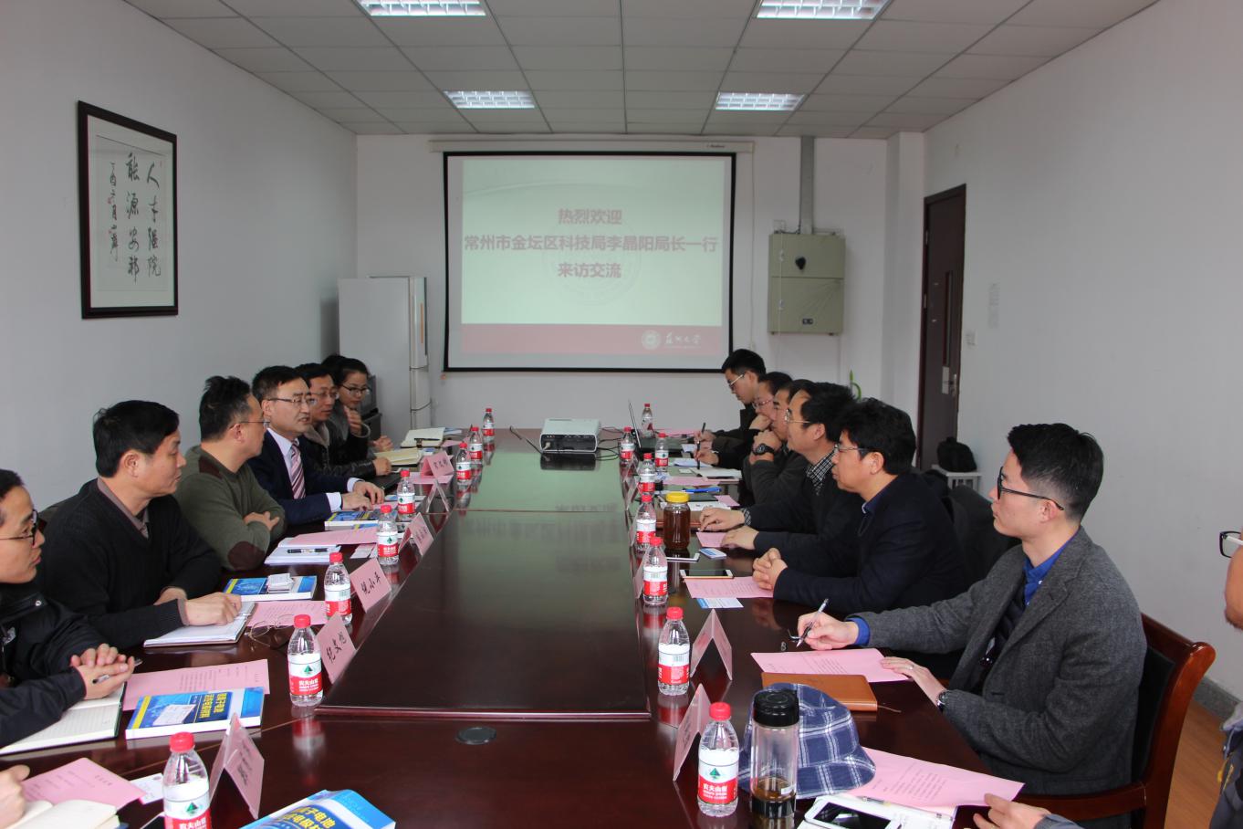 仇国阳代表学校对李晶阳局长一行莅临我校调研交流表示欢迎,并从发展状况、改革举措和未来展望等方面介绍了我校的历史沿革、人才培养、队伍建设、科研创新、协同创新以及未来发展战略等总体情况。他指出,学校领导高度重视科技创新和产学研工作,以“学术大师+科研团队”的模式,打造了具有国际竞争力的人才队伍;坚持“顶天立地”的科技创新发展战略,科研创新工作取得突出成果。学校与常州市金坛区有很多很好的合作机会,希望通过这次交流能推动建设协同创新中心等一些具体的合作事项。
