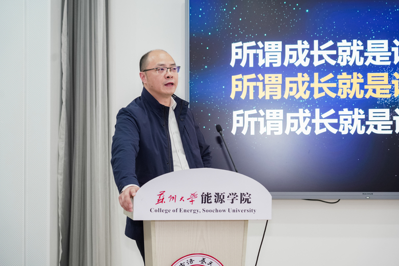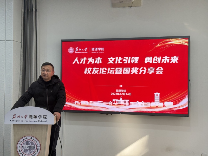 12月14日下午,能源学院“人才为本、文化引领、勇闯未来”专题校友论坛暨国奖分享会在新能源大楼115会议室举行。参加会议的有北京石墨烯研究院有限公司副总裁陆伟俊,九江德思光电材料有限公司总经理齐朋伟,常州市委组织部人才工作处顾津宇,学院国家奖学金获得者研究生代表倪坤、郭文奕。包军副书记主持了本次论坛。