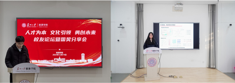 随后,学院2023年、2024年国家奖学金获得者倪坤,2024年国家奖学金获得者郭文奕两名同学从学术科研态度、平衡学习生活、开展科研工作的方式方法等多个角度给同学们分享了高效科研产出助力国奖申请的经验。