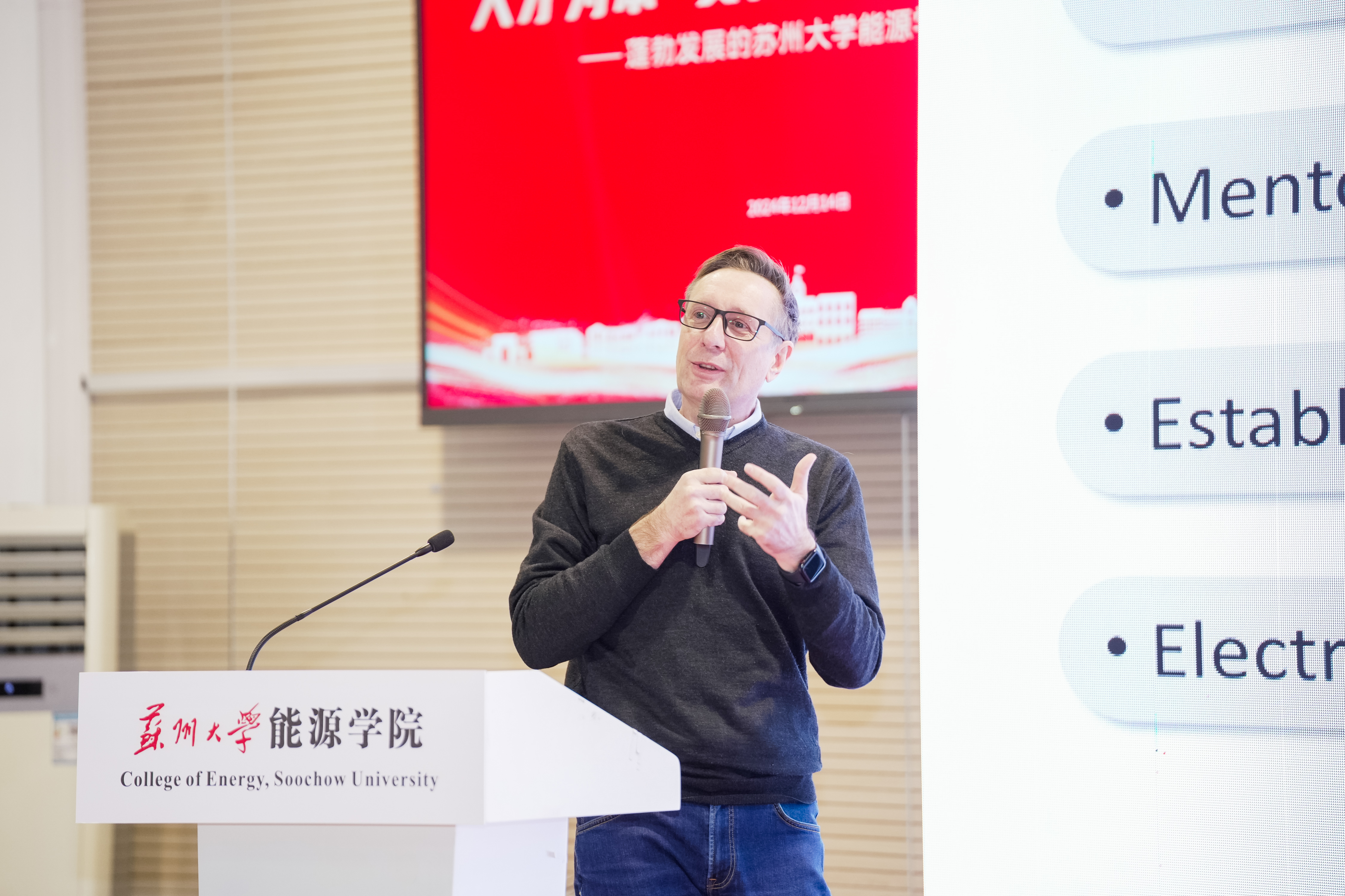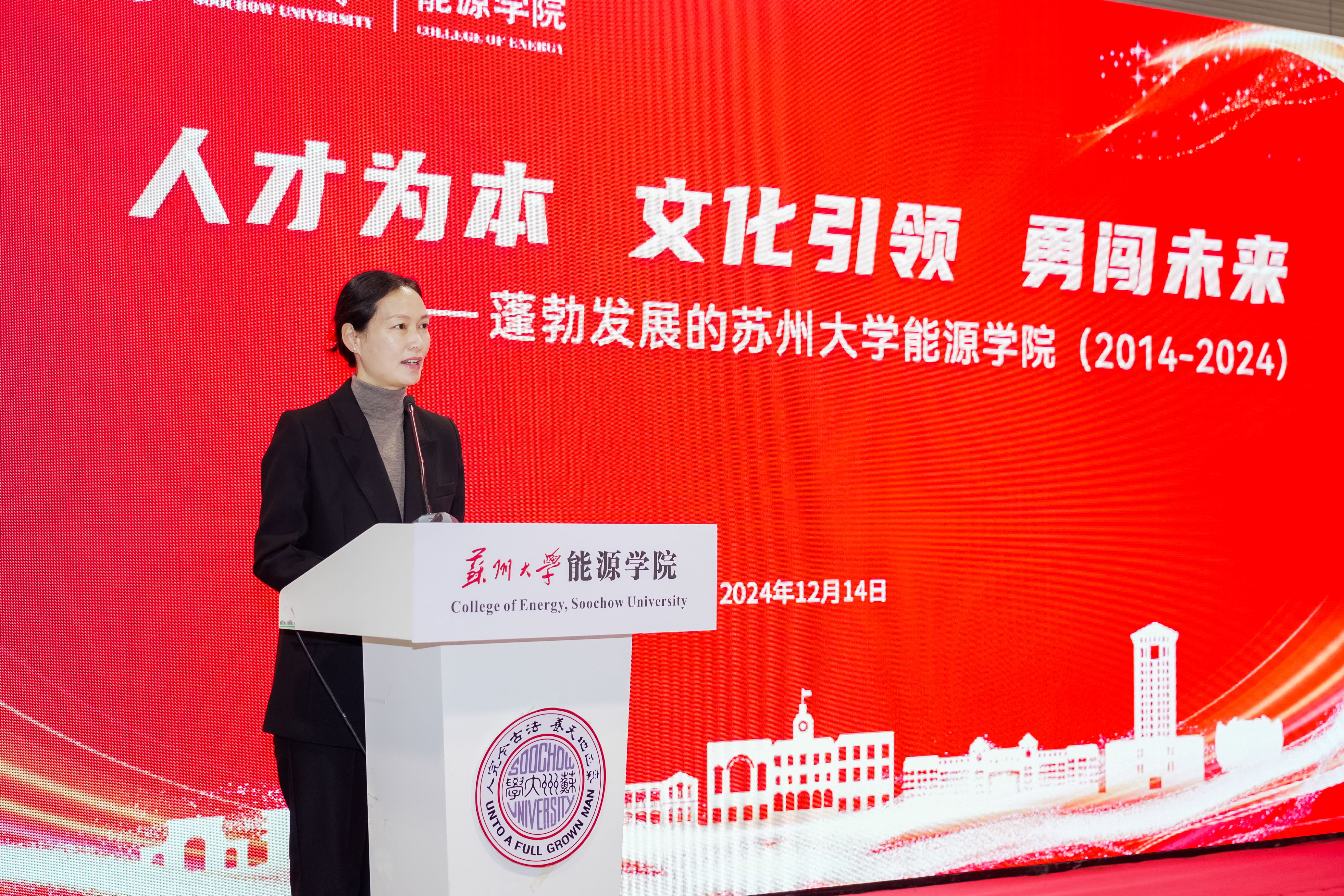 12月14日,人才为本 文化引领 勇闯未来——蓬勃发展的苏州大学能源学院(2014-2024)会议在新能源大楼121多功能厅顺利举办。中国科学院院士刘忠范,苏州大学副校长张正彪,常州大学副校长晏成林,北京石墨烯研究院有限公司总裁许莉,北京石墨烯研究院有限公司副总裁陆伟俊,北京大学物理学院教授刘开辉,北京大学材料科学与工程学院教授张艳锋,校人力资源处处长何峰,科技党委书记徐小乐,教务处处长方亮,先进技术处副处长丁正锋,科学技术研究院副院长刘开强,国际交流合作处副处长朱履骅,HORIBA集团战略合作高级经理濮玉梅,HORIBA集团科学仪器事业部销售总监许鹏,以及学院校友代表、师生代表参加此次会议,会议由能源学院党委书记沙丹丹主持。