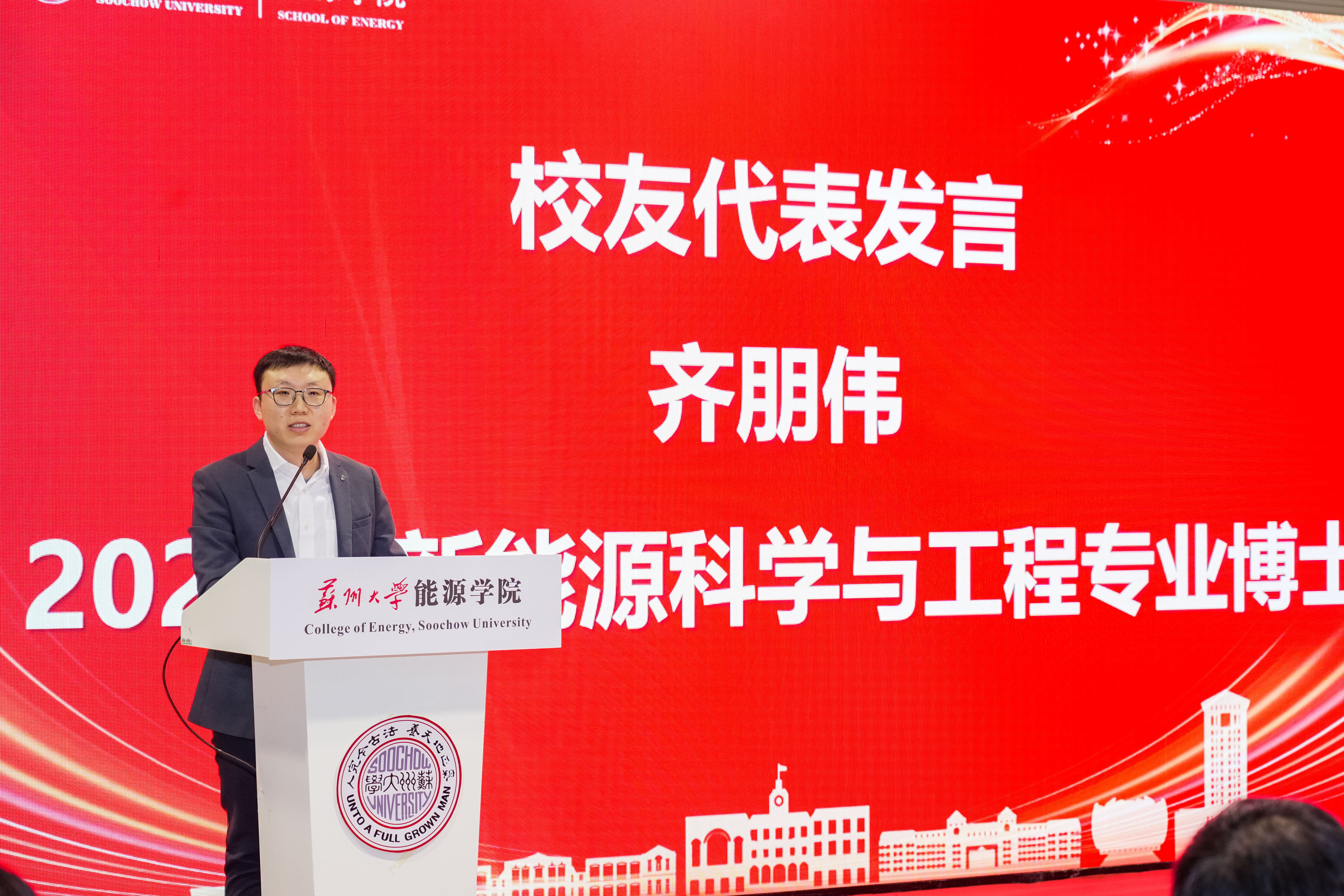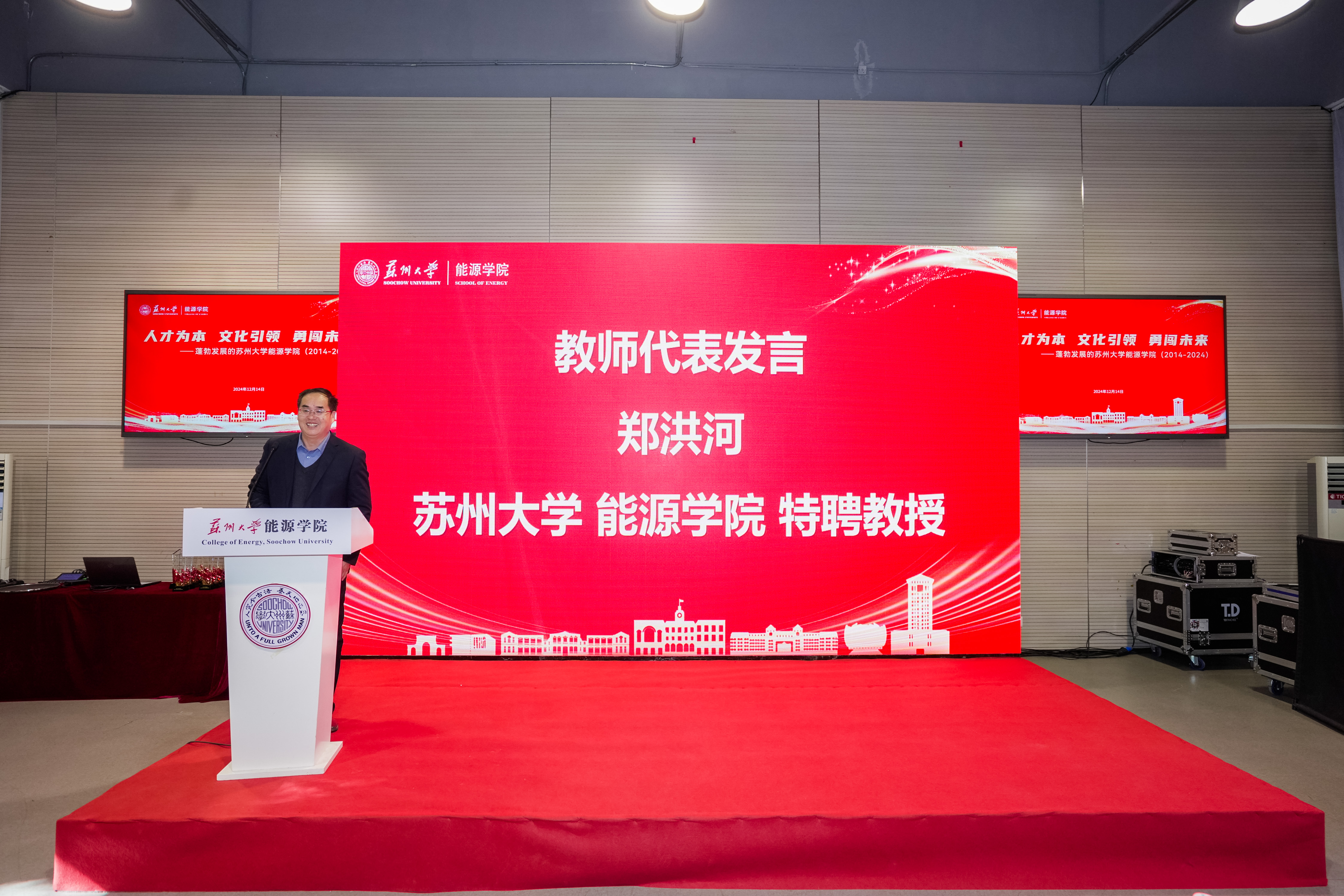 苏州大学-BGI协同创新中心代表许莉,能源学院教师代表郑洪河、Mark H.Rummeli,校友代表齐朋伟分别发言。他们分享了与能源学院的合作背景和成果、在能源学院奋斗工作十年路程感悟以及学习生活成长历程体会,通过全球校友VCR集锦,共同祝福与畅想能源学院美好未来。