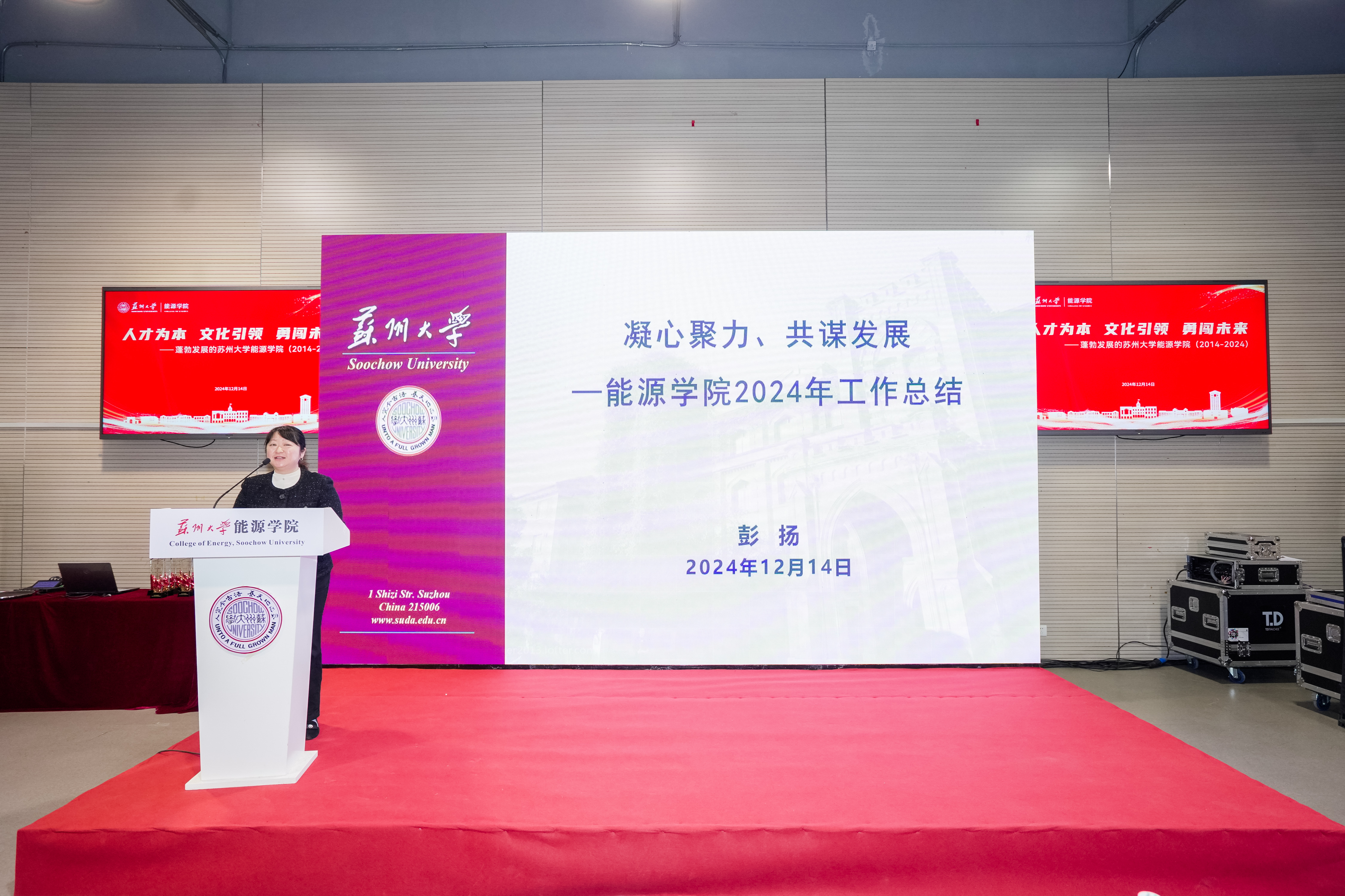 彭扬院长作能源学院2024年总结汇报,从师资队伍与人才发展、教育教学与人才培养、研究院布局与公共测试中心亮点、科技与创新平台成果、国际合作交流与文化建设等方面综合汇报。