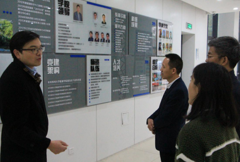 晏成林院长陪同温州大学领导一行参观了能源学院、能源与材料创新研究院公共测试平台、展厅。晏成林院长详细介绍了学院发展现状、平台设施、师资队伍、发展规划等方面的情况。王舜院长一方面称赞了能源学院近年来取得的成就,对新能源学科的活力充满期待,另一方面对能源学院的发展和规划提出了自己的想法和建议。