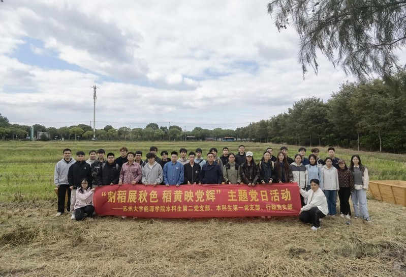 秋高气爽,稻浪翻金。为深刻体悟苏州“鱼米之乡”的丰厚底蕴,在躬身实践中锤炼党性品格、厚植乡土情怀,10月22日,能源学院本科生第二党支部、本科生第一党支部及行政党支部带领师生共赴苏州太湖之畔的生态农场,开展“割稻展秋色 稻黄映党辉”主题党日活动,将一堂生动的党课搬到丰收的田野上。