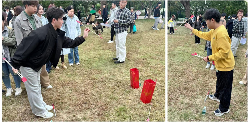 在传统体育游戏环节,“投壶”的凝神静气与“捶丸”的巧妙博弈,让同学们体验了古代运动的雅趣与智慧,每一次精准命中与挥杆击球都引来阵阵喝彩。能源学院的选手们沉着应战,展现出良好的心理素质。