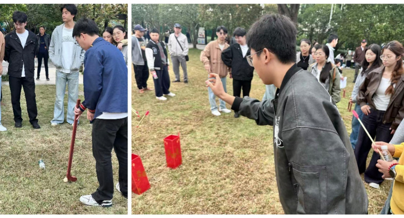 在传统体育游戏环节,“投壶”的凝神静气与“捶丸”的巧妙博弈,让同学们体验了古代运动的雅趣与智慧,每一次精准命中与挥杆击球都引来阵阵喝彩。能源学院的选手们沉着应战,展现出良好的心理素质。