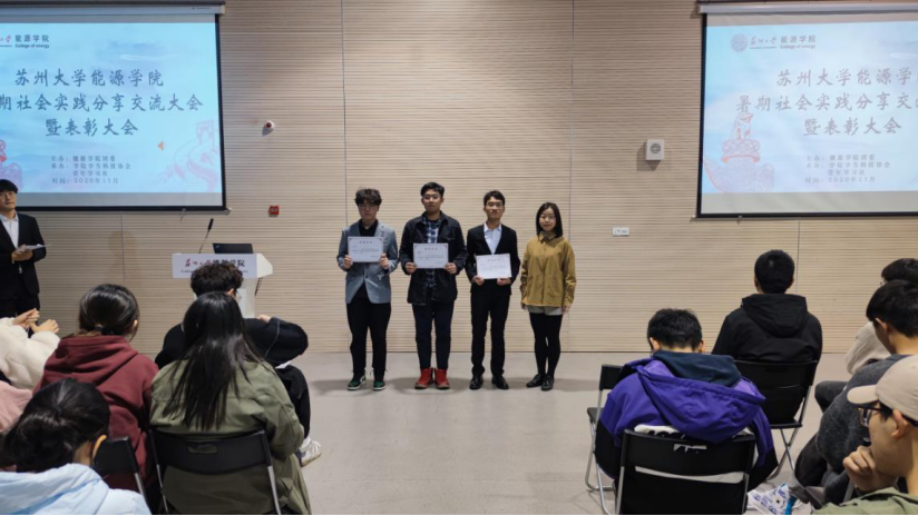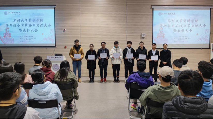 1125日,能源学院2020年暑期社会实践分享交流暨表彰大会在新能源大楼多功能厅121如期举行。学院党委书记沙丹丹老师、团委书记张振华老师、团委副书记严若今老师、2020级辅导员胡碧洋老师出席了大会,活动由傅博文同学主持。
