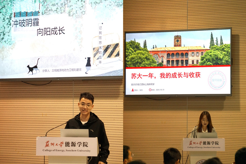 薪火相传志不渝,沪赣学子绽芳华。10月31日下午,苏州大学2025级江西、上海籍本科新生见面会在新能源大楼121多功能厅成功举行。能源学院党委副书记、副院长包军,本科生辅导员魏义凡,“苏小招”学生代表钟学辉,学院优秀学生代表刘建润、张月以及各校区2025级江西、上海籍本科新生代表出席了本次见面会。