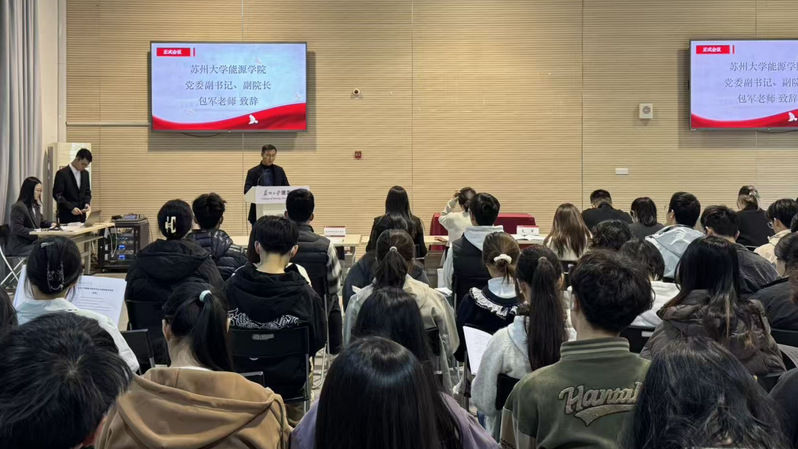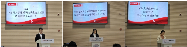 2025年11月22日下午,苏州大学能源学院第六次学生代表大会在学院多功能厅隆重举行。学院党委副书记、副院长包军,团委书记严若今,团委副书记魏义凡,团委副书记(学生)王品超,苏州大学学生会临时工作组成员温可人,以及各兄弟学院学生会代表和各年级、班级学生代表共同出席大会。会议由2022级能源与动力工程专业刘建润同学主持。