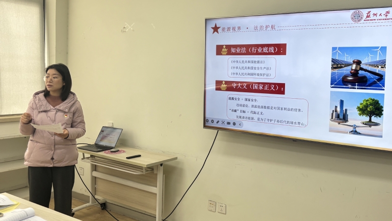 2025年12月22日,能源学院研究生第一党支部组织开展“知法守法·守护正义,做新时代‘能源卫士’”主题党课暨12月主题班会。党课由党支部书记严若今主讲,支部全体党员参加学习。