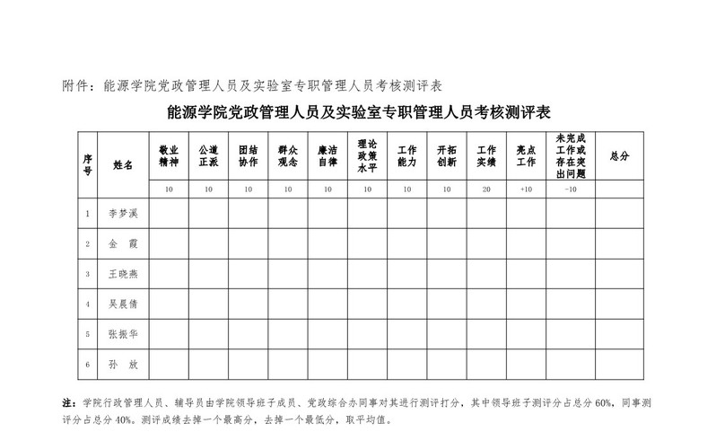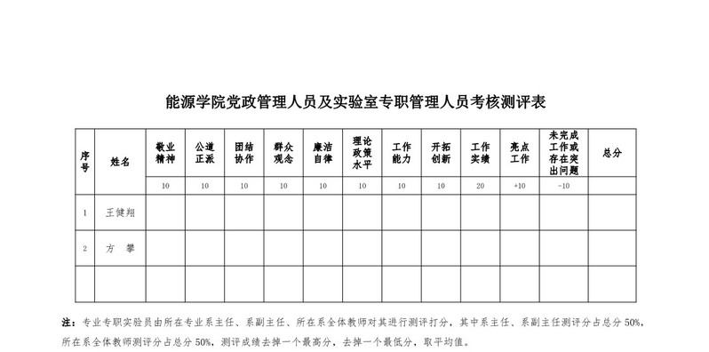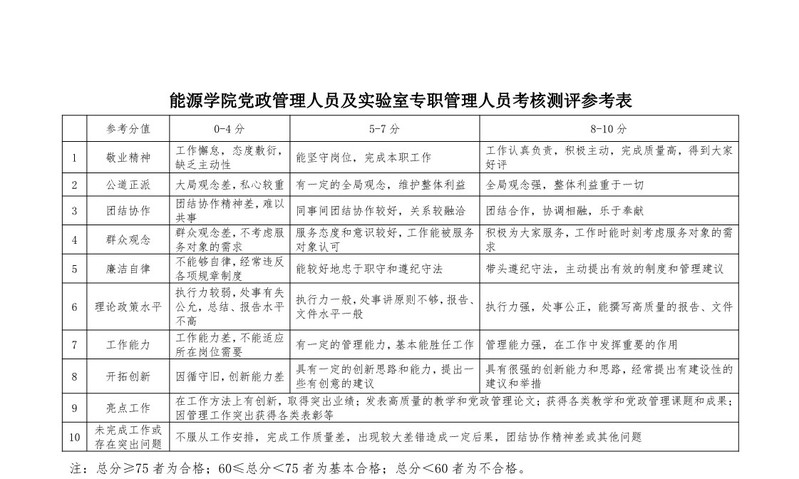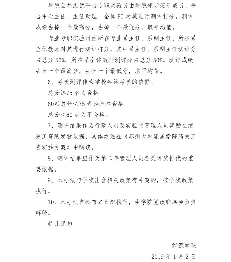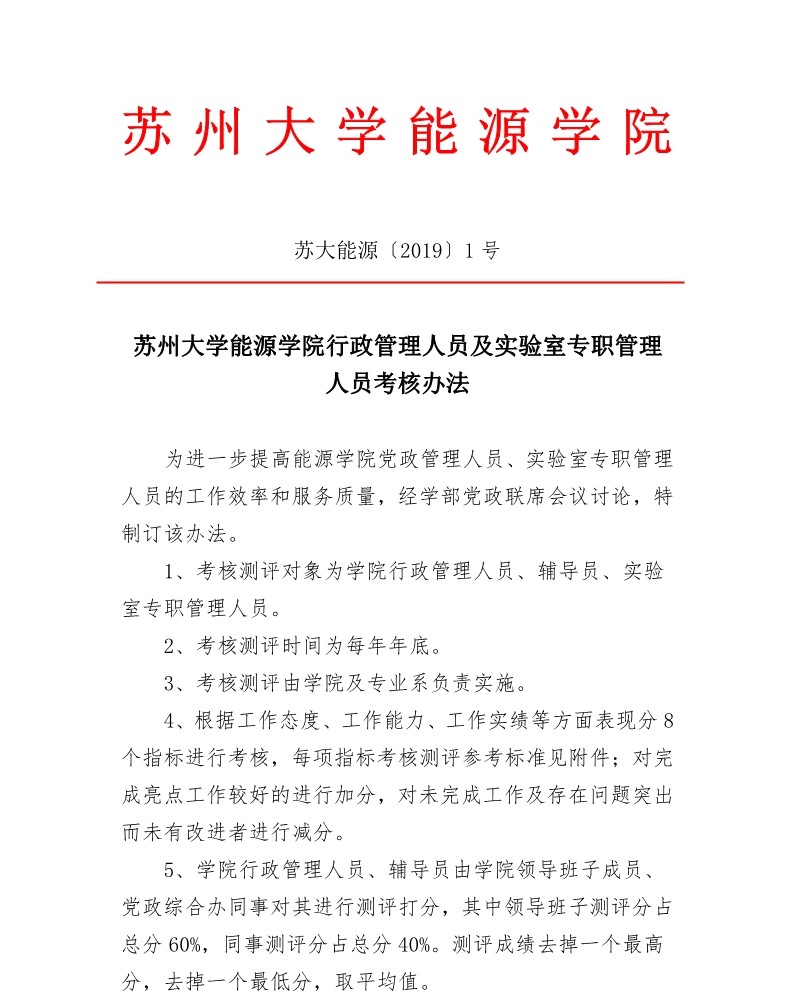 苏州大学能源学院行政管理人员及实验室专职管理人员考核办法 苏大能源〔2019〕1号