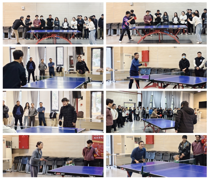 师生乒乓球挑战赛作为本届运动会的亮点环节,特别设置了别开生面的梯度挑战规则。孙靖宇副院长以其卓越的球技高居挑战梯度顶端,仅需3个球便能展现其精湛技艺,他灵活多变的发球、干净利落的击球动作,处处彰显着冠军选手的深厚功底。严冬生书记和叶庆老师位居第二梯度,5个球的赛制中,严书记沉着稳健的攻防转换与叶庆老师独特的球风相得益彰。包军副书记和李晓伟主席设置的7个球赛制最为"亲民",包书记在更多回合的对攻中与同学们展开激烈较量,李主席则通过稳健的控球与同学们进行多拍相持。五个梯度层层递进,既展现了老师们不同的技术水平,也让挑战赛更具观赏性和参与性。