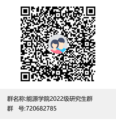 能源学院2022级研究生新生请入群(QQ群二维码见下图),加群请备注“专业-姓名”,入群后请修改群名片“年级-硕/博-专业-姓名”,如:2020-硕-能环-沈俊勇。
