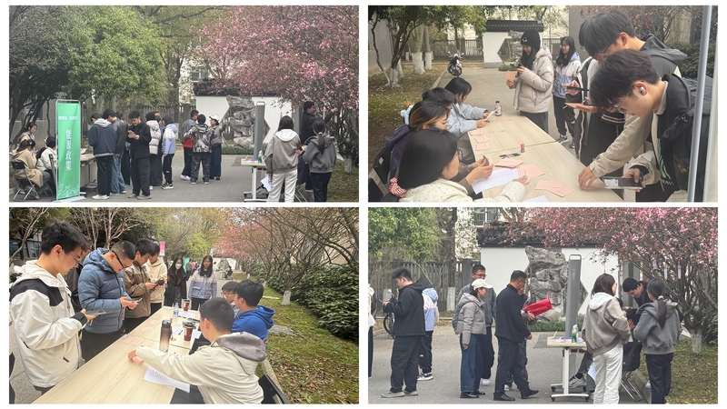 活动还特别设立了对外开放的游客互动区,围绕樱花知识展开趣味答题,吸引了大量游客驻足参与。答对者可获得精美的樱花主题贴纸或书签,让春日的校园在知识分享中更添暖意。