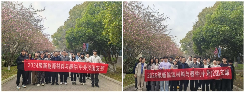 春风拂面,樱花烂漫。为深化团务知识学习,厚植能源报国情怀,增强基层团支部凝聚力,3月22日下午,学院2024级、2025级新能源材料与器件(中外)2团支部在樱花大道联合举办了一场别开生面的“樱韵铸魂·能源笃行”主题团日活动。学院党委副书记、副院长包军,团委书记严若今,团委副书记魏义凡,学生团委副书记夏威等出席活动。活动巧妙融合思想引领、专业教育与校园文化,通过线下打卡与知识闯关的趣味形式,吸引了本院团员青年、学院领导及众多过往游客的热情参与,现场气氛热烈。