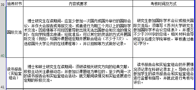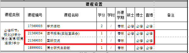 一、在2023级的培养方案中,有“读书报告”、“国际交流”等必修环节,对应的培养方案学分和考核方式如下:
