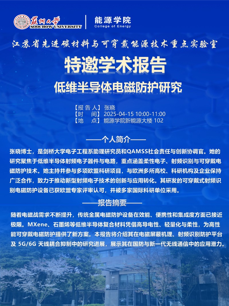 江苏省先进碳材料与可穿戴能源技术重点实验室特邀学术报告