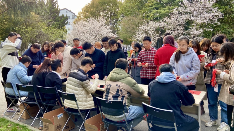竞答祈愿活动在夕阳的余晖中落下帷幕,樱花树上飘曳的红色题卡变得稀疏,意犹未尽的人群渐渐散去。本次党日活动营造了良好党史学习氛围,推动党史学习教育深入群众,深入基层,深入师生,深入人心。从百年党史中汲取前行力量,以优异成绩迎接中国共产党百年华诞。
