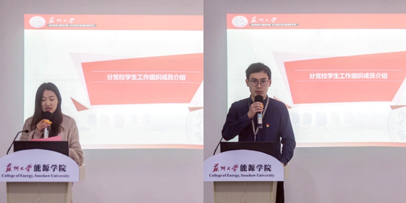 首先,主持人介绍了分党校学生工作组织的相关情况。能源学院和敬文书院在学习借鉴校党校和兄弟院系分党校学生工作经验的基础上,结合实际,成立了分党校学生工作组织,各部门分工明确,各司其职,充分发挥了学员们自我管理、自我服务、自我成长的同辈辅导作用。孙正嘉老师、孙放老师分别上台宣读了各分党校学生工作组织名单。