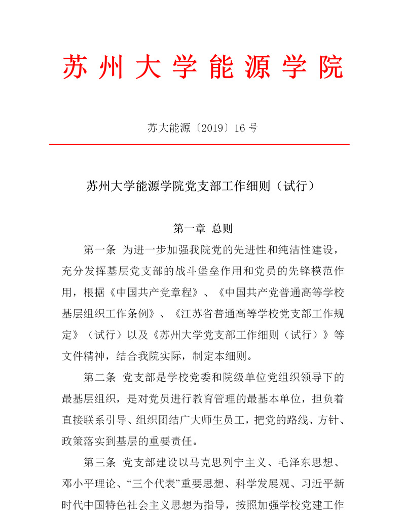 苏州大学能源学院党支部工作细则(试行) 苏大能源〔2019〕16号