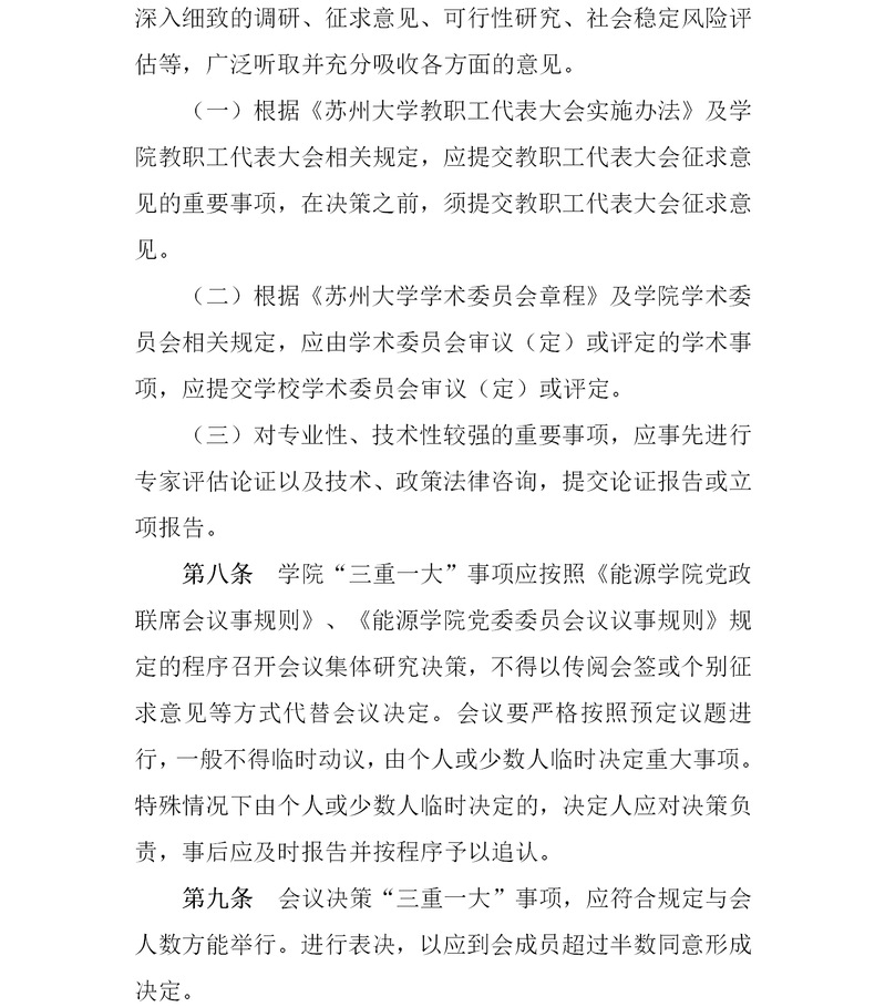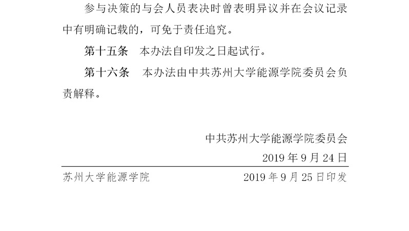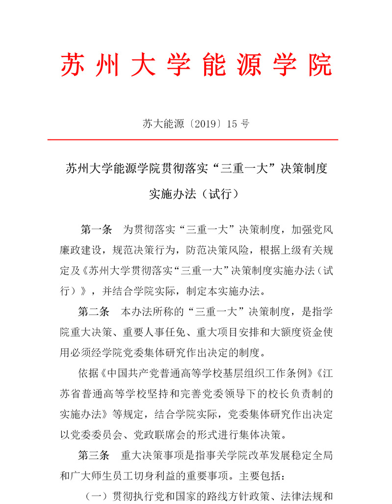 苏州大学能源学院贯彻落实“三重一大”决策制度 苏大能源〔2019〕15号