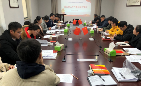 学院三个教工党支部、三个学生党支部的支部书记就2019年度的工作在党建工作月度交流午餐会上进行了述职汇报。支部书记主要从落实全面从严治党情况、加强思想政治工作情况、学习宣传贯彻党的十九大精神及习近平新时代中国特色社会主义思想情况、在教学、科研、管理、服务等各项工作中发挥党员先锋模范作用和支部战斗堡垒作用情况、开展“不忘初心、牢记使命”主题教育的情况以及抓基层党建工作取得的成效、存在的问题和改进工作的思路措施等方面进行了述职。