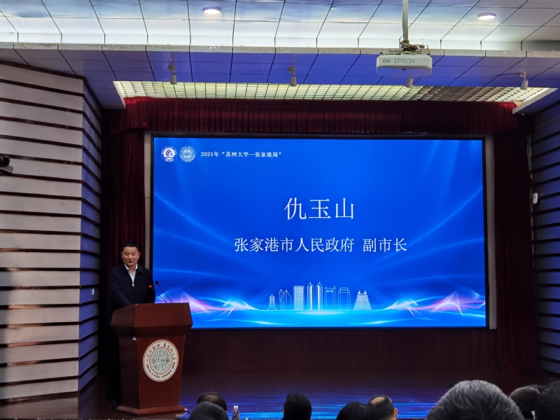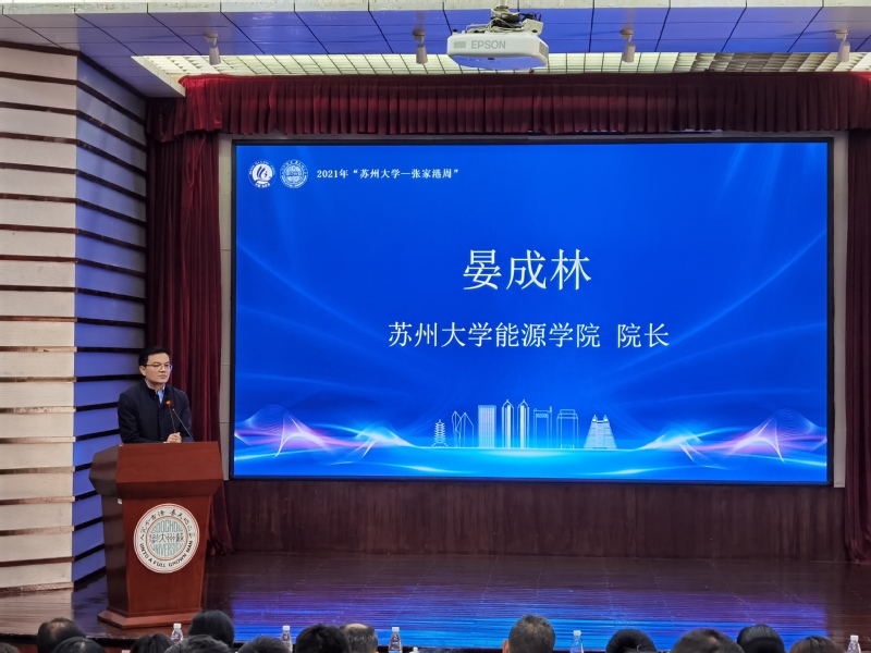 4月26日下午,“2021张家港-苏州大学新能源产业链专场对接会”在天赐庄校区红楼学术报告厅成功举办。张家港市人民政府副市长仇玉山、张家港市科学技术局副局长俞萍、苏州大学科技成果转化处副处长糜志雄、苏州大学能源学院院长晏成林、党委书记沙丹丹和苏州大学张家港工业技术研究院相关领导、张家港市新能源企业家代表、苏州大学相关专家教授等出席对接会。会议由苏州大学能源学院副院长、苏州大学张家港工业技术研究院副院长田景华主持。