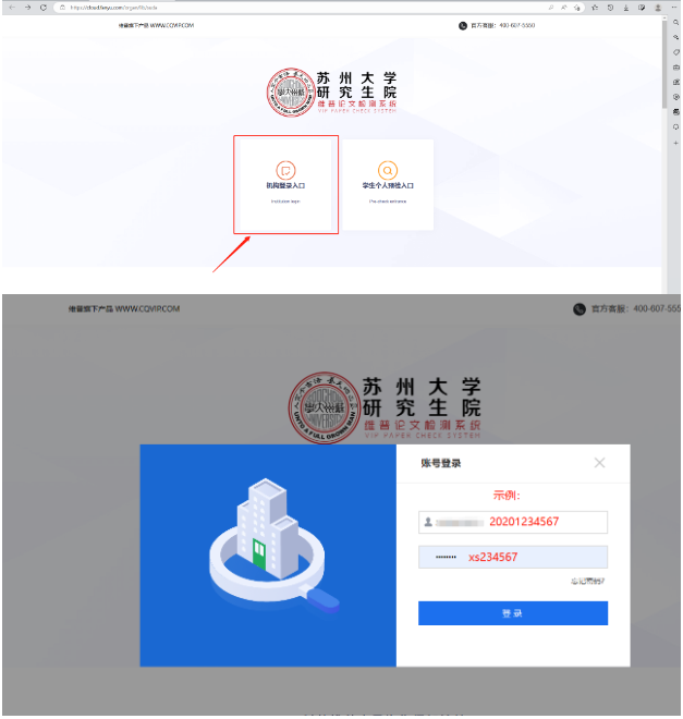 论文查重检测请登录:苏州大学研究生院-维普论文检测系统网站:https://cloud.fanyu.com/organ/lib/suda